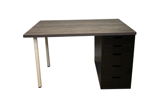 CHAZE MARLOW Table with 1x Drawer & Legs , Charcoal Burn Wood/Black/White
