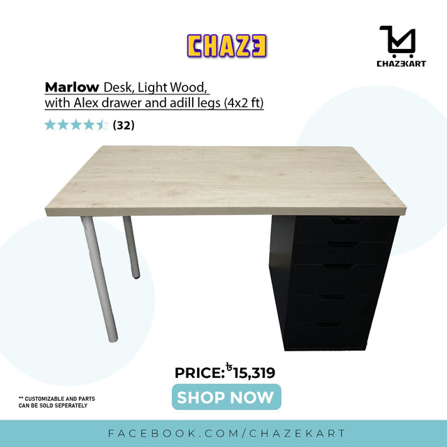 The CHAZE MARLOW Table with Drawer & Legs boasts a versatile design, combining Maple wood with black and white accents. Whether for personal or commercial use, it offers practicality and aesthetic appeal to any setting. Expertly crafted, its harmonious balance of style and functionality makes it ideal for any situation.