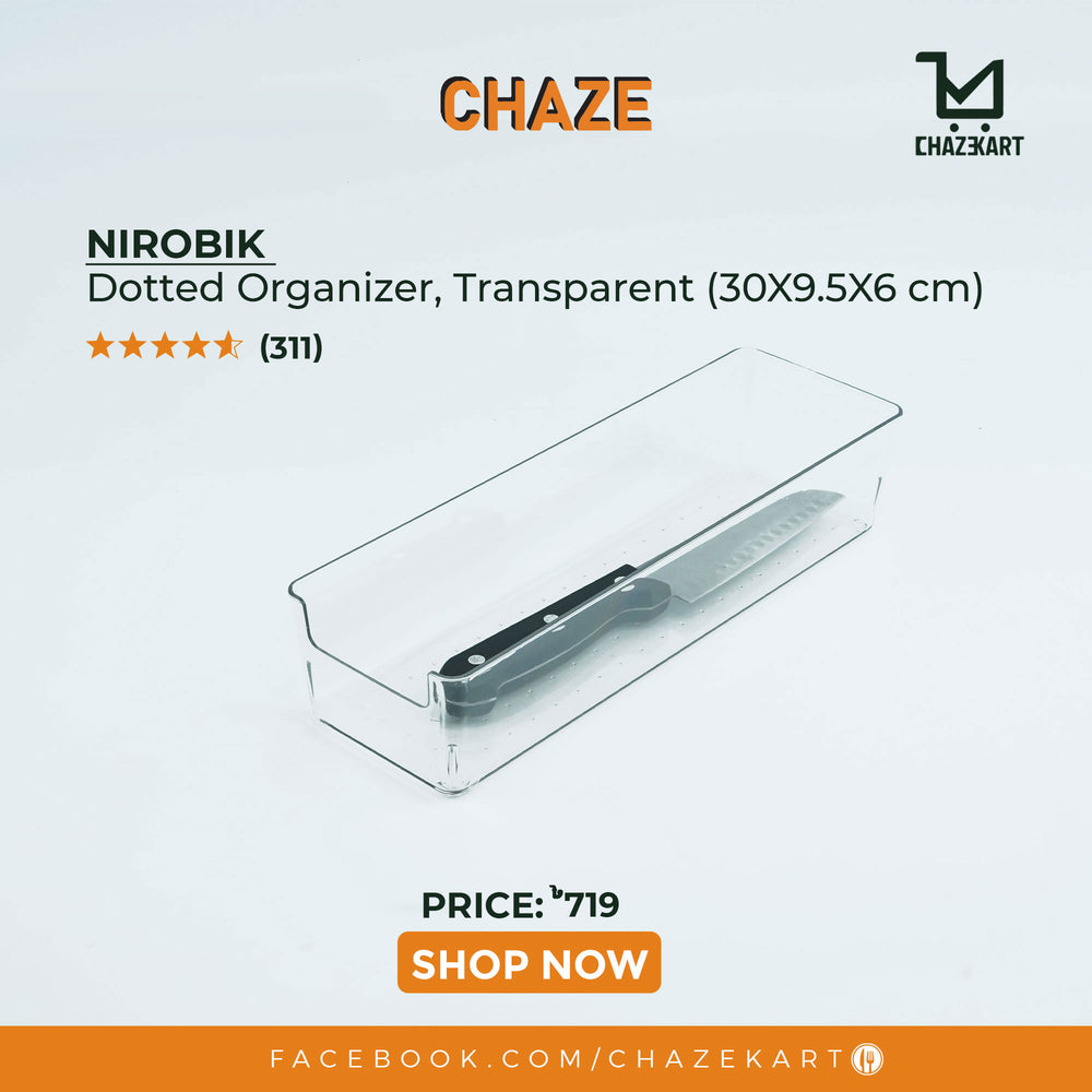 CHAZE, NIROBIK Transparent Organizer is a 30X9.5X6 cm solution for effectively organizing items. Its transparency makes it easy to identify items that may have previously been difficult to locate, making organizing convenient and efficient.