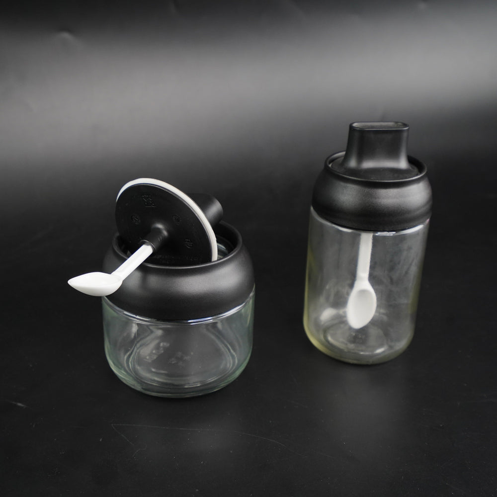 CHAZE OSBY Glass Spice Jars (set of 2) provide a sanitary storage option for health-minded individuals. Crafted with airtight glass encasing and spoons, these jars securely store spices & other items.