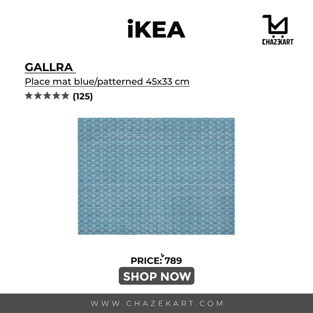 IKEA GALLRA place mat blue/patterned 45x33 cm is backordered and will ship as soon as it is back in stock.