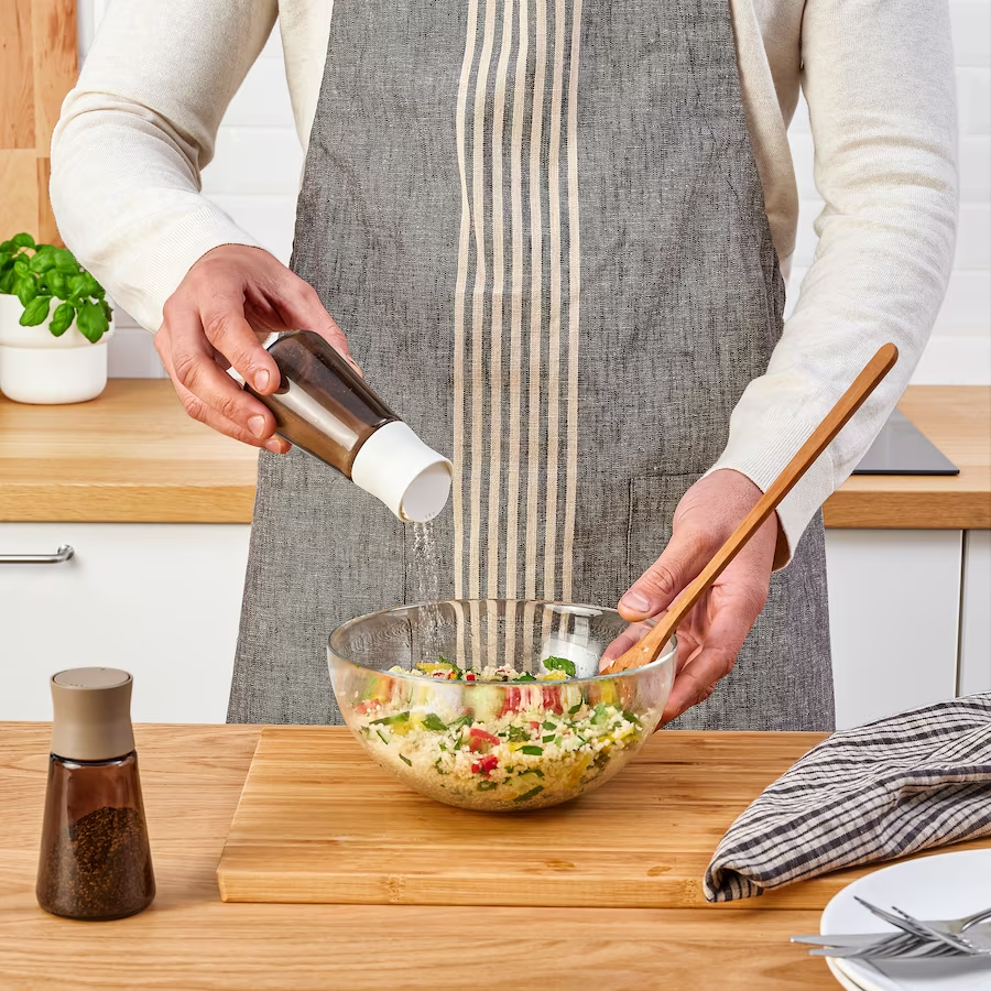 HALVTOM Salt and Pepper Shakers are the perfect way to add style to any kitchen. Made from brown glass and with a sculptural shape, these 12 cm shakers bring a restaurant-quality feel to the home. Keep them visible on the stovetop for easy access, or show them off on the dining table.
