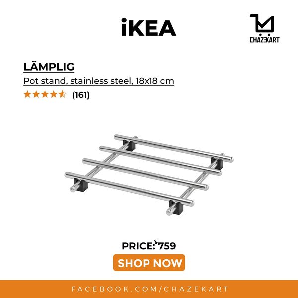 The IKEA LAMPLIG Pot Stand, Stainless Steel, 18x18 cm, offers exceptional heat resistance for a safe and reliable kitchen experience. Constructed with durable stainless steel, this pot stand has been extensively tested to withstand extreme temperatures while maintaining its functionality and quality.