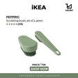IKEA, PEPPRIG scrubbing brush, set of 2 green is backordered and will ship as soon as it is back in stock.