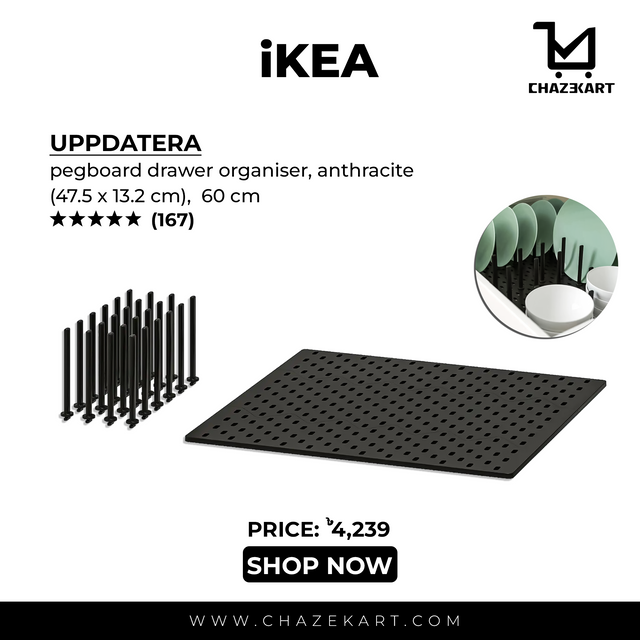 Experience organized bliss with our UPPDATERA drawer organizer. The meticulously placed pegs keep your items in place, ensuring a clutter-free and luxurious storage experience. The satisfaction of opening a drawer and finding everything in its designated spot will never get old.