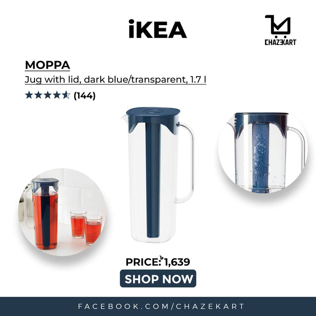 IKEA MOPPA Jug with Lid, Dark Blue/Transparent, 1.7 L is backordered and will ship as soon as it is back in stock.