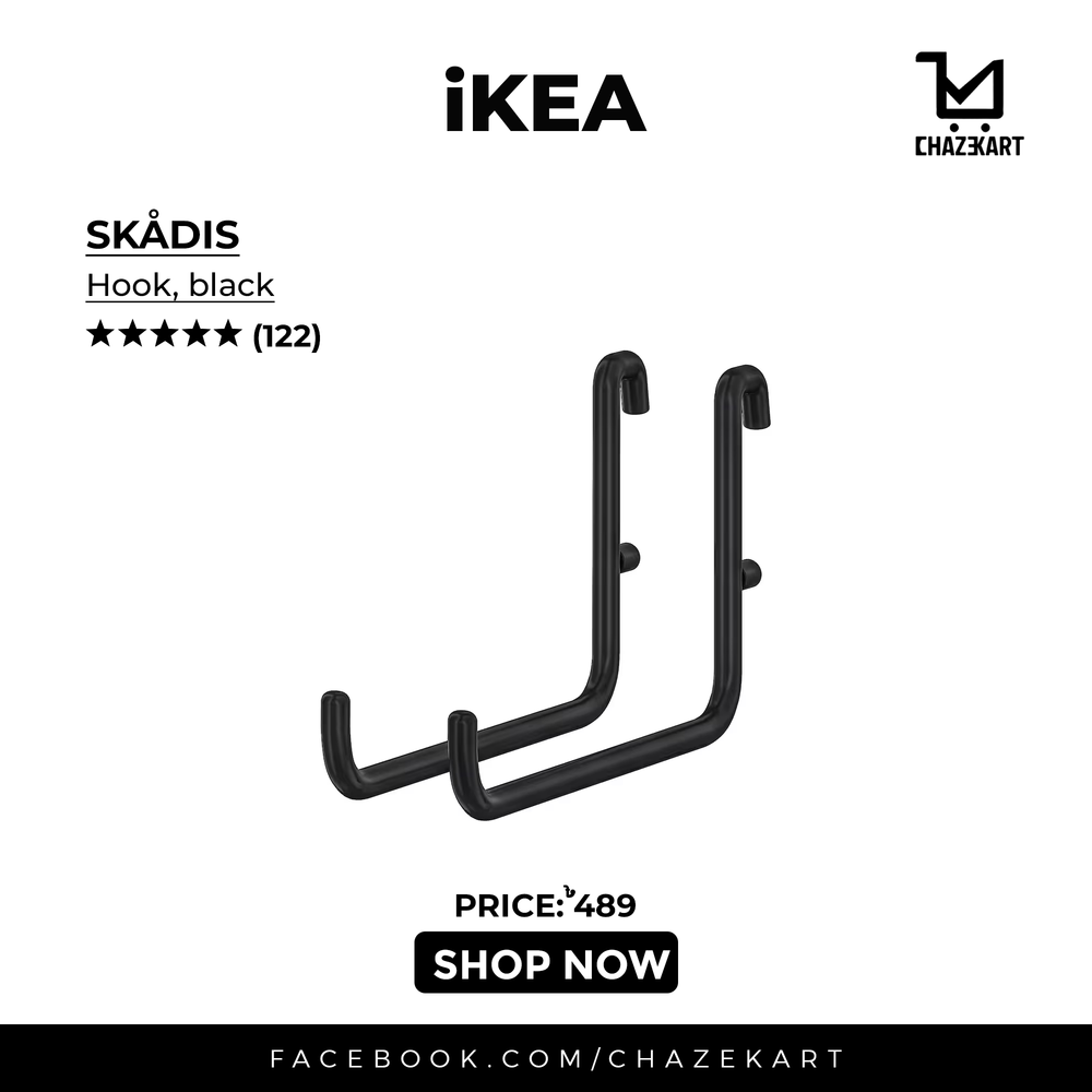IKEA SKADIS Hook, Black, Set of 2 ( L Hook )