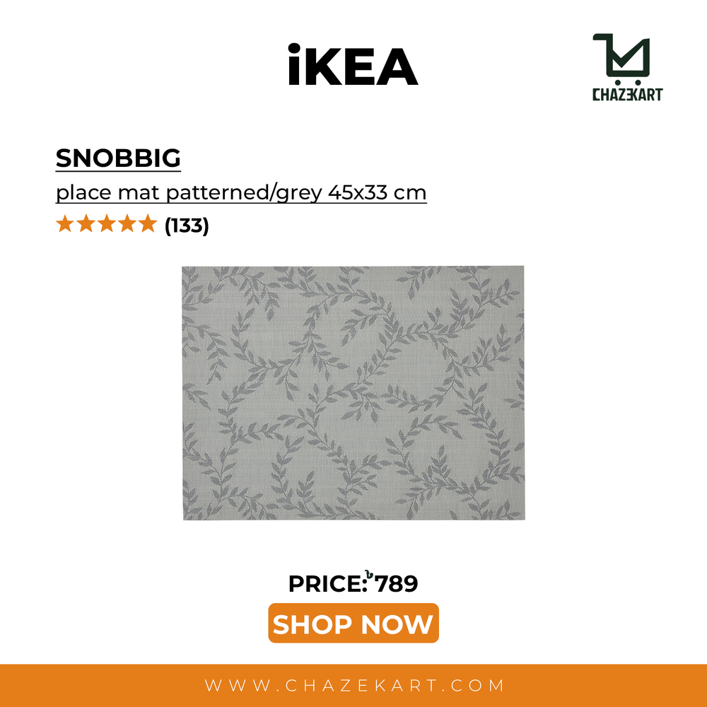 IKEA SNOBBIG place mat patterned/grey 45x33 cm is backordered and will ship as soon as it is back in stock.