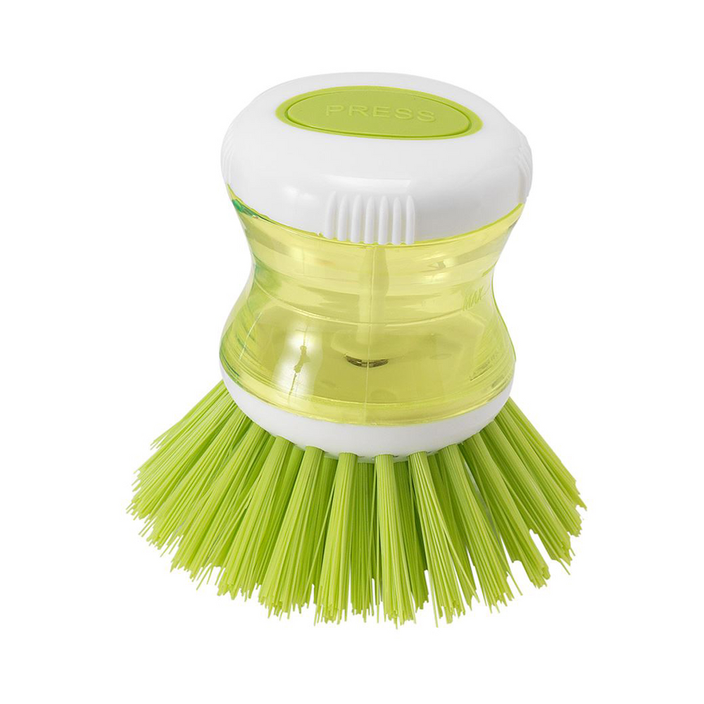 This brush offers you direct access to washing-up liquid with a simple push of the green button, allowing you to easily clean even the dirtiest dishes. It is a convenient and efficient system.