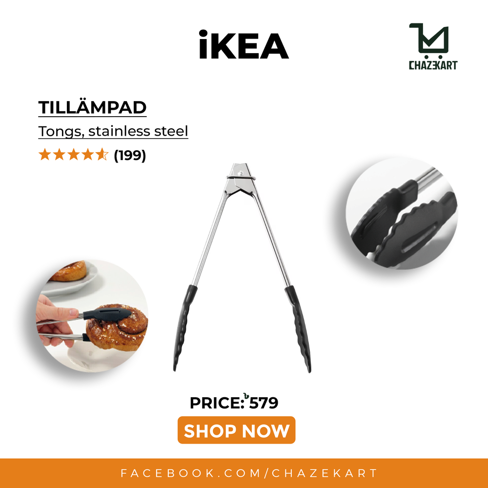 The TILLÄMPAD Tongs are perfect for serving all your favorite dishes. Made from stainless steel, these tongs can be used to take out hot cakes from the oven, or to serve up deliciously cooked salads, spaghetti, and vegetables.A perfect kitchen tool for all your culinary needs.