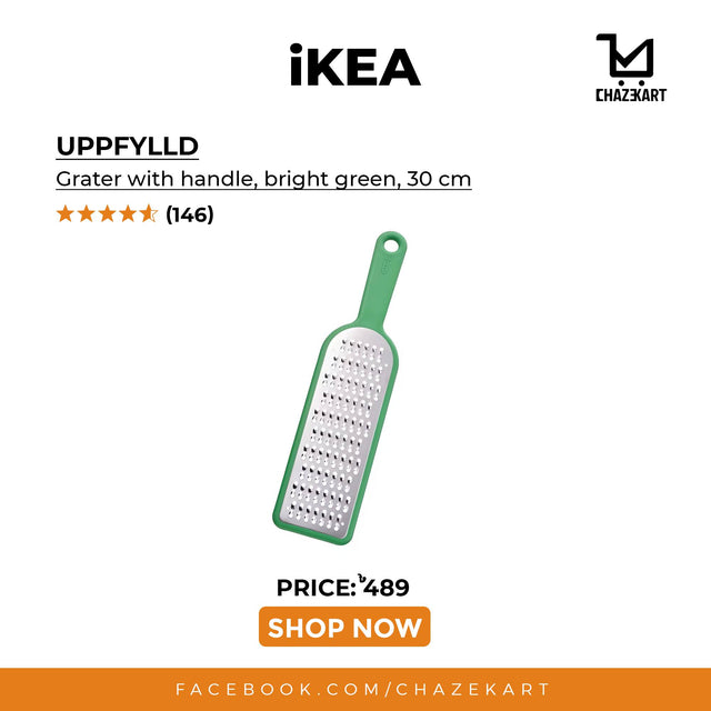 IKEA UPPFYLLD Grater with handle, bright green, 30 cm is backordered and will ship as soon as it is back in stock.